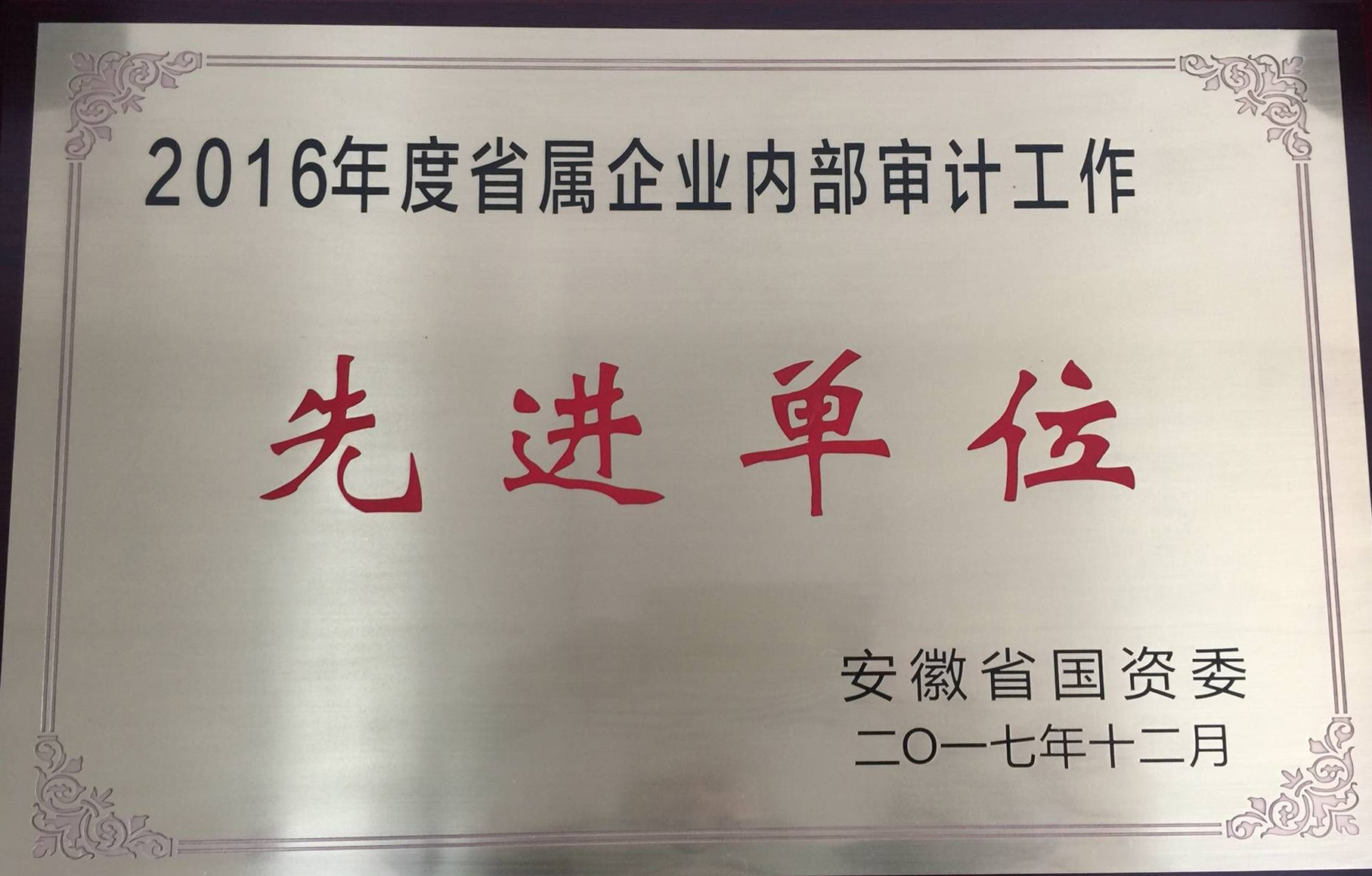日前,在省國資委召開的年度內(nèi)審工作總結(jié)會上,安徽建工集團再次獲得“省屬企業(yè)內(nèi)部審計工作先進單位”稱號,這是集團公司連續(xù)第五年獲得國資委內(nèi)審先進單位(個人)榮譽。