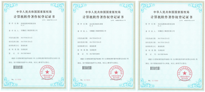 近日,由安徽建工集團(tuán)自主開發(fā)的《項目地圖移動管理系統(tǒng)V1.0》、《會議發(fā)表意見系統(tǒng)V1.0》、《檔案查閱和借閱系統(tǒng)V1.0》獲得計算機(jī)軟件著作權(quán)登記證書,從頒證之日起,這3項系統(tǒng)軟件的版權(quán)將得到中國版權(quán)保護(hù)中心的有效保護(hù)。