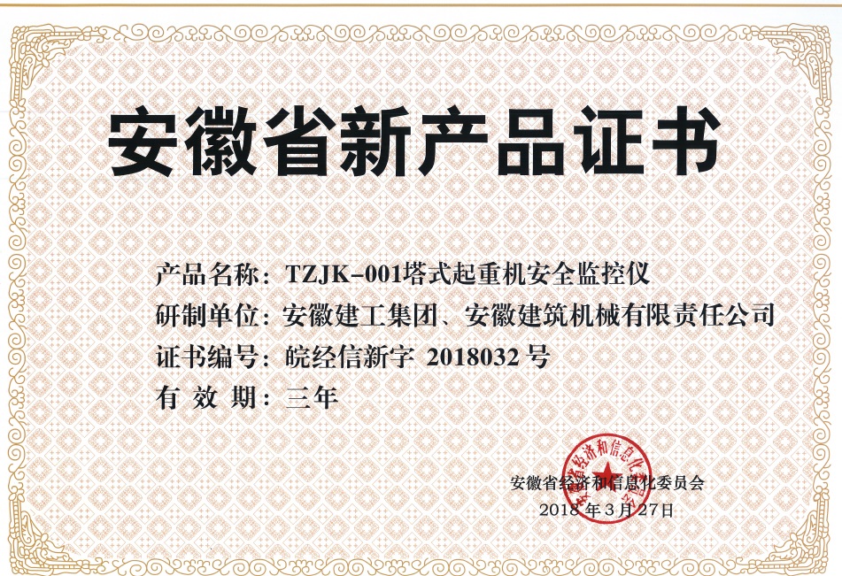 日前,安徽建工集團(tuán)及所屬安徽建機(jī)公司研發(fā)的“TZJK-001塔式起重機(jī)安全監(jiān)控儀”順利通過安徽省經(jīng)信委省級(jí)新產(chǎn)品鑒定,確認(rèn)為2018年安徽省新產(chǎn)品(第一批)。