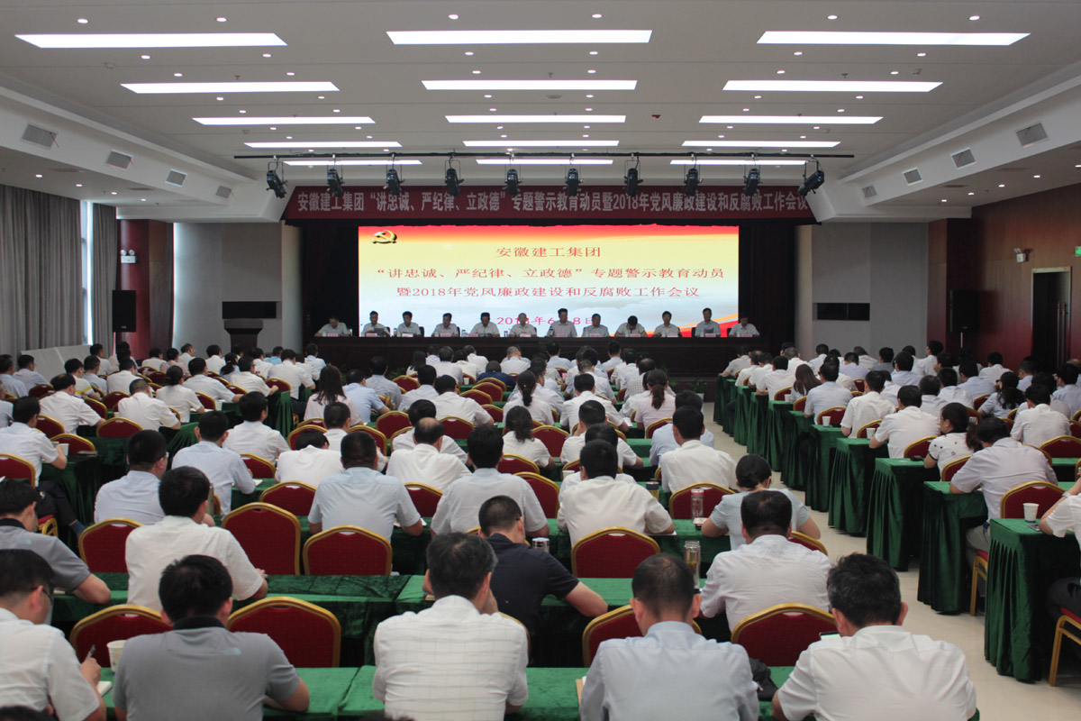 6月8日下午,安徽建工集團(tuán)“講忠誠、嚴(yán)紀(jì)律、立政德”專題警示教育動(dòng)員暨2018年黨風(fēng)廉政建設(shè)和反腐敗工作會(huì)議在安建大廈三樓會(huì)議室召開。集團(tuán)公司黨委書記、董事長趙時(shí)運(yùn)出席會(huì)議并講話;集團(tuán)公司總經(jīng)理、董事、黨委副書記劉家靜傳達(dá)有關(guān)案件警示材料;集團(tuán)公司黨委副書記牛曙東傳達(dá)省國資系統(tǒng)“講忠誠、嚴(yán)紀(jì)律、立政德”專題警示教育動(dòng)員會(huì)精神以及省委巡視有關(guān)情況通報(bào);集團(tuán)公司黨委委員、紀(jì)委書記宋志華結(jié)合學(xué)習(xí)貫徹省屬企業(yè)黨風(fēng)廉政建設(shè)和反腐敗工作會(huì)議精神作工作安排。