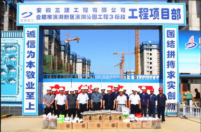 七月中旬以來,持續(xù)高溫,正值施工生產(chǎn)旺季,安徽建工集團廣大職工戰(zhàn)高溫、斗酷暑奮戰(zhàn)在生產(chǎn)第一線。集團領(lǐng)導(dǎo)心系一線職工,7月16日至25日,集團公司領(lǐng)導(dǎo)趙時運、劉家靜、牛曙東、楊廣亮、戴良軍、許克順、霍向東、王厚良、宋志華、牛曉峰、申玉恩分赴施工生產(chǎn)一線,看望慰問廣大職工,檢查生產(chǎn)安全情況和防暑降溫工作情況,并為他們送去綠豆、白糖、毛巾、仁丹、十滴水等防暑降溫物品。