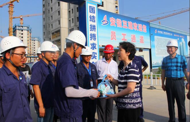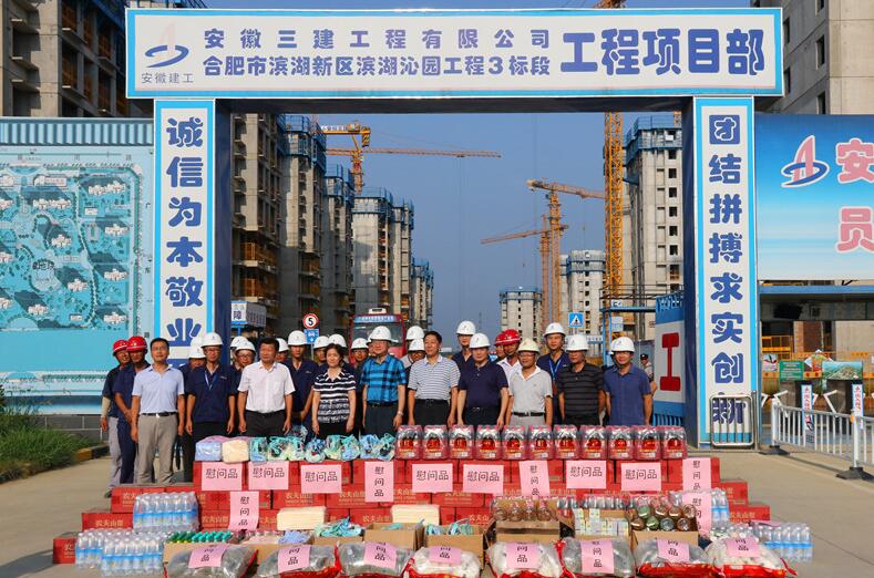 8月7日下午,省住建廳黨組書記、廳長趙馨群,副廳長吳桂和一行在集團(tuán)公司總經(jīng)理、黨委副書記劉家靜,安徽三建公司董事長、黨委書記左登宏等陪同下,來到安徽三建公司濱湖沁園產(chǎn)業(yè)化項(xiàng)目,看望和慰問奮戰(zhàn)在施工一線干部職工,調(diào)研集團(tuán)公司夏季防暑降溫工作,實(shí)地察看了施工現(xiàn)場并送來防暑降溫用品。