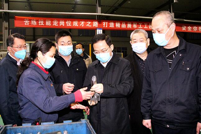 3月4日下午,李中赴軍工集團(tuán)調(diào)研,了解企業(yè)疫情防控、復(fù)工復(fù)產(chǎn)和經(jīng)營(yíng)發(fā)展情況,對(duì)企業(yè)在抓好疫情防控的同時(shí)積極組織軍品生產(chǎn)供應(yīng)、努力為國(guó)防建設(shè)提供裝備保障給予充分肯定。他指出,軍工集團(tuán)歷經(jīng)艱苦光輝的創(chuàng)業(yè)歷程,為國(guó)防現(xiàn)代化建設(shè)作出了積極貢獻(xiàn)。下一步要在抓好疫情防控的同時(shí),突出軍品特色,堅(jiān)持創(chuàng)新驅(qū)動(dòng),加強(qiáng)黨的建設(shè),奮力走出一條軍民融合發(fā)展的新路子。隨后,李中前往軍工集團(tuán)所屬神劍科技股份公司,實(shí)地察看生產(chǎn)一線疫情防控和復(fù)工復(fù)產(chǎn)情況。在神劍公司電裝工房,李中詳細(xì)了解軍品科研產(chǎn)品試驗(yàn)情況,他指出,要下好科技創(chuàng)新“先手棋”,堅(jiān)持自主創(chuàng)新、協(xié)同創(chuàng)新雙輪驅(qū)動(dòng),繼續(xù)做強(qiáng)做優(yōu)做大軍品產(chǎn)業(yè)。在神劍公司加機(jī)分廠,李中與車間技術(shù)帶頭人深入交流,要求集團(tuán)黨委堅(jiān)持以人才為本,為科技人員創(chuàng)新創(chuàng)造創(chuàng)業(yè)提供更加有力的保障。當(dāng)?shù)弥訖C(jī)分廠在安全防控的前提下,已實(shí)現(xiàn)全員兩班輪替生產(chǎn)時(shí),李中十分欣慰,再三叮囑加機(jī)分廠負(fù)責(zé)同志要堅(jiān)決落實(shí)疫情防控和安全生產(chǎn)第一責(zé)任人職責(zé),統(tǒng)籌做好職工“8小時(shí)以內(nèi)”和“8小時(shí)以外”的管理,確保安全有序?qū)崿F(xiàn)滿產(chǎn)。