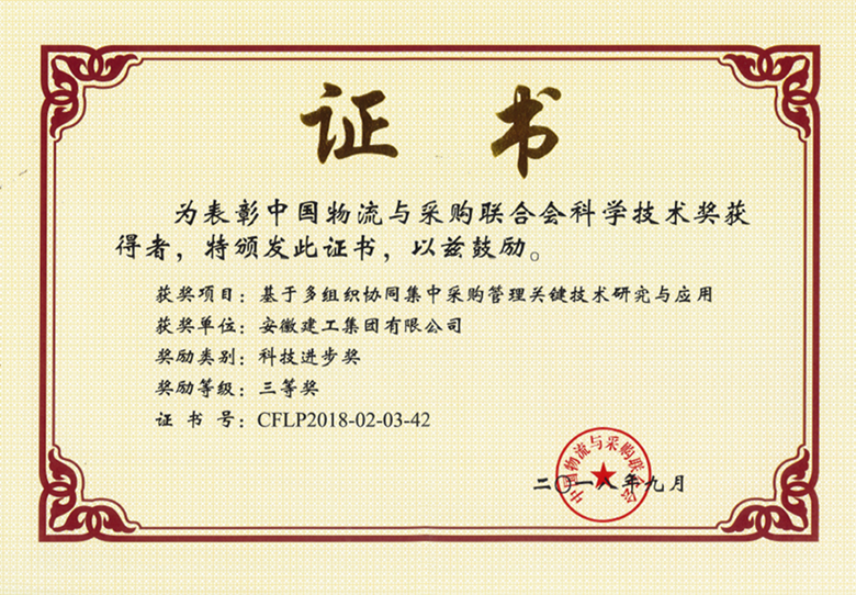 近日,由中國(guó)物流與采購(gòu)聯(lián)合會(huì)主辦的第十一屆現(xiàn)代物流科技創(chuàng)新大會(huì)暨2018年度中國(guó)物流與采購(gòu)聯(lián)合會(huì)科學(xué)技術(shù)獎(jiǎng)?lì)C獎(jiǎng)大會(huì)于重慶成功召開,集團(tuán)申報(bào)的《基于多組織協(xié)同集中采購(gòu)管理關(guān)鍵技術(shù)研究與應(yīng)用》榮獲科技進(jìn)步三等獎(jiǎng)。