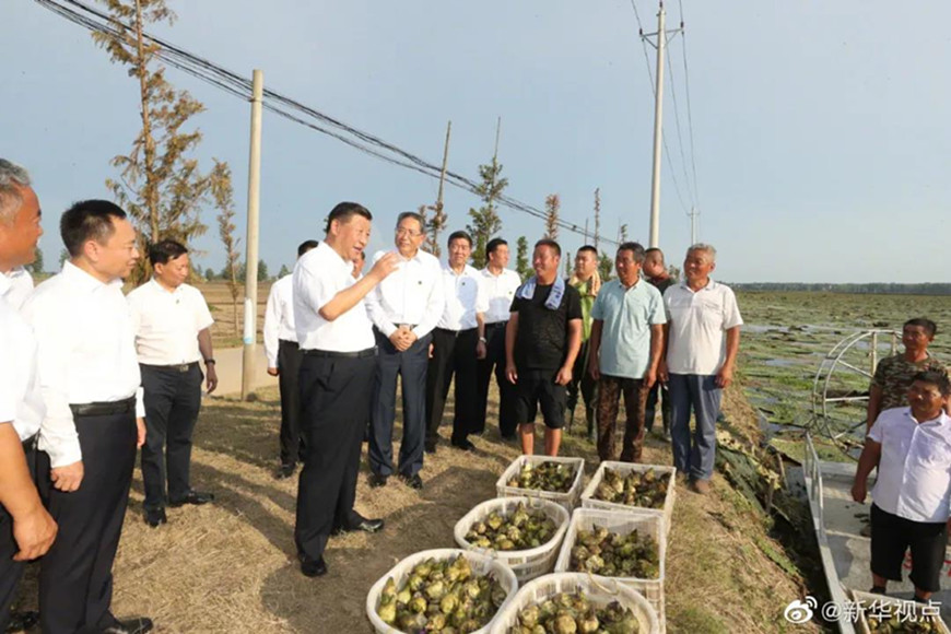 “這一直是我牽掛的事。”18日下午,正在安徽考察調(diào)研的習(xí)近平總書記來到阜陽市阜南縣蒙洼蓄洪區(qū)利民村西田坡莊臺,頂著炎炎烈日,走進(jìn)田間地頭,深入莊臺農(nóng)戶,看望慰問受災(zāi)群眾。鄉(xiāng)親們告訴總書記:“蓄洪期間,大家住在莊臺,電沒斷、水照供、生活用品有人送?,F(xiàn)在水退了,都在搶種補(bǔ)種,水退到哪里,就補(bǔ)種到哪里。請總書記放心!”習(xí)近平高興地說:“我一直牽掛災(zāi)區(qū)的群眾,看到鄉(xiāng)親們生產(chǎn)生活都有著落、有希望,我的心就踏實?!?/SPAN>