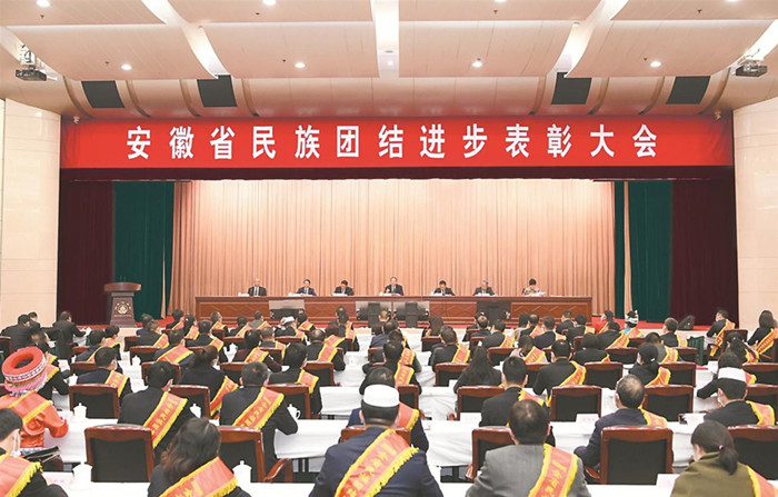 12月14日上午,安徽省民族團結(jié)進步表彰大會在合肥隆重舉行。本報記者 吳文兵 攝