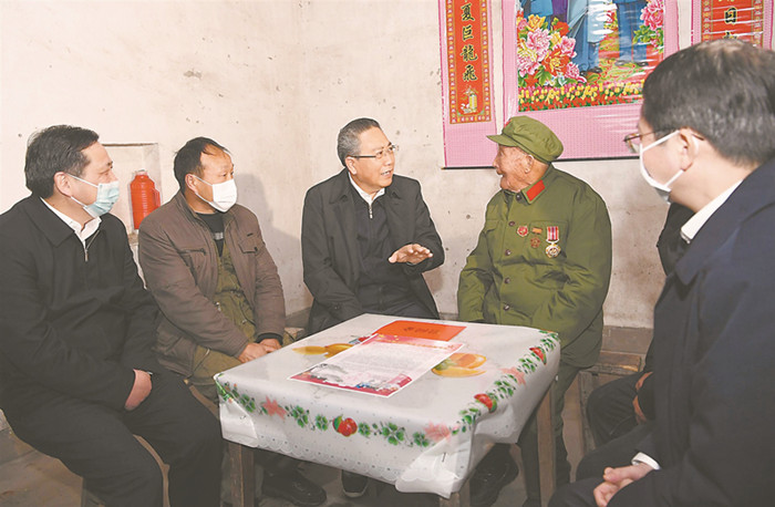下午,李錦斌冒著冷風(fēng)細(xì)雨來到?jīng)芸h走訪慰問,親切看望老戰(zhàn)士、老黨員、扶貧干部和基層干部,向大家致以親切問候和新春祝福。在琴溪鎮(zhèn)玲芝村抗美援朝老戰(zhàn)士左保明家,李錦斌一進(jìn)門,就緊緊握住老人的手,動情地說:“您入朝參戰(zhàn)保家衛(wèi)國立了大功,是人民的功臣!”他詳細(xì)詢問老人家庭、生活情況,誠摯祝福老人健康長壽,叮囑當(dāng)?shù)馗刹恳鋵嵱嘘P(guān)政策,保障好老人生活。隨后,李錦斌來到位于云嶺鎮(zhèn)新興村的原中共中央東南局舊址,追尋革命先輩紅色足跡,瞻仰革命事跡實物。他指出,歷史是最好的教科書,要加強(qiáng)黨史學(xué)習(xí)教育,同時學(xué)習(xí)新中國史、改革開放史、社會主義發(fā)展史,充分用好紅色資源,把優(yōu)秀革命傳統(tǒng)一代一代傳下去,堅定走好新時代的長征路。劉嬋娟是新興村的老村干、老黨員。李錦斌對她長期以來的付出表示感謝,勉勵她繼續(xù)在產(chǎn)業(yè)發(fā)展和鄉(xiāng)村建設(shè)中發(fā)揮余熱,也把自己的日子越過越幸福甜美。在新興村黨群服務(wù)中心,李錦斌親切慰問了吳小亭、戴紅、汪和平等扶貧干部,詳細(xì)了解基層黨建和為民服務(wù)情況。他強(qiáng)調(diào),要增強(qiáng)黨組織政治功能和組織功能,充分發(fā)揮全面從嚴(yán)治黨引領(lǐng)保障作用,解決好群眾急難愁盼問題,著力建強(qiáng)基層黨組織戰(zhàn)斗堡壘。