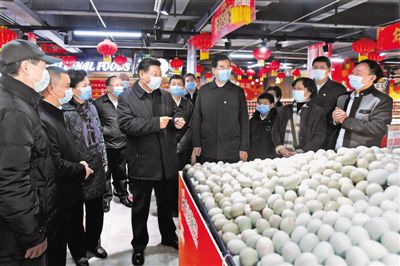 前來置辦年貨的群眾熱情向總書記問好。習(xí)近平親切詢問大家年貨備齊沒有。習(xí)近平強調(diào),各級黨委、政府和領(lǐng)導(dǎo)干部要把事關(guān)百姓切身利益的事情抓實抓好,尤其要落實防疫措施,加強食品安全監(jiān)管,確保百姓過年安心、放心、舒心。