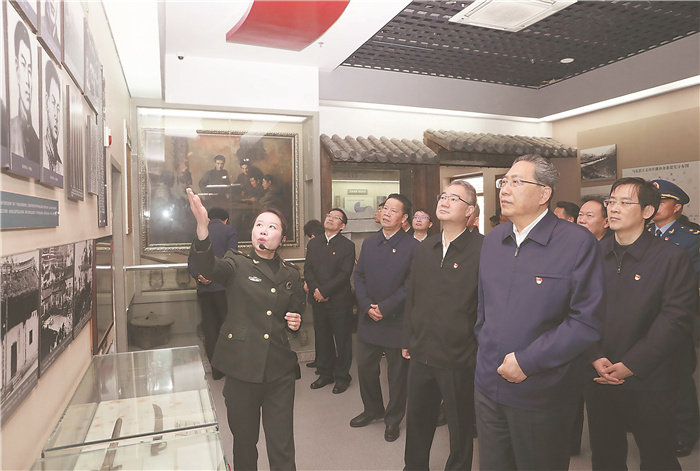 隨后,大家來到金寨縣紅軍紀(jì)念堂和革命博物館,重溫革命戰(zhàn)爭的崢嶸歲月。一件件革命文物,一份份珍貴史料,一個個紅色故事,再現(xiàn)了“一寸山河一寸血,一抔熱土一抔魂”的光榮歷史。李錦斌、王清憲、張昌爾等不時駐足、久久凝視,深情緬懷革命先輩的豐功偉績??吹礁锩鼞?zhàn)爭中地方黨組織作出“救濟貧苦百姓,安定群眾生活”的決議內(nèi)容,李錦斌飽含深情地說,這就是堅持以人民為中心的生動體現(xiàn),這就是我們黨的初心,不論到什么時候,我們都不能忘記。他指出,要牢記習(xí)近平總書記諄諄囑托,進一步加強革命傳統(tǒng)教育,大力弘揚大別山精神、新四軍精神、渡江精神、小崗精神等,讓紅色基因滲進血液、浸入心扉,轉(zhuǎn)化為不忘初心、牢記使命、永遠(yuǎn)奮斗的強大精神動力。