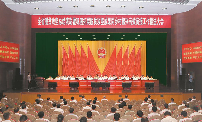李錦斌指出,黨的十八大以來,以習(xí)近平同志為核心的黨中央把脫貧攻堅擺在治國理政的突出位置,習(xí)近平總書記以馬克思主義政治家的恢弘氣魄、遠(yuǎn)見卓識,親自指揮、親自部署、親自督戰(zhàn),引領(lǐng)中華民族實現(xiàn)歷史上亙古未有的偉大跨越,極大振奮了中華兒女追夢圓夢的決心和信心,極大激發(fā)了億萬人民接續(xù)奮斗的士氣和干勁。習(xí)近平總書記始終牽掛江淮兒女、關(guān)心安徽發(fā)展,不倦足跡深深印刻在貧困地區(qū)的一山一水,殷殷囑托深深溫暖著貧困群眾的一枝一葉,為我省脫貧攻堅戰(zhàn)全面勝利指明了前進方向,提供了根本遵循,注入了強大動力。八年來,我們始終牢記習(xí)近平總書記的諄諄教誨,把脫貧攻堅作為重大政治任務(wù)和第一民生工程,舉全省之力攻克了一個又一個貧中之貧、堅中之堅,建檔立卡484萬貧困人口全部脫貧,3000個貧困村全部出列,31個貧困縣全部摘帽,大別山等革命老區(qū)、皖北地區(qū)和沿淮行蓄洪區(qū)區(qū)域性整體貧困問題徹底解決,交出了一份中央放心、人民滿意、可載入安徽發(fā)展史冊的高分答卷。經(jīng)過八年感天動地的不懈奮戰(zhàn),全省人民生活水平得到前所未有的提升,鄉(xiāng)村整體面貌得到前所未有的改善,脫貧群眾內(nèi)生動力得到前所未有的激發(fā),農(nóng)村基層基礎(chǔ)得到前所未有的夯實,在我國脫貧攻堅偉大史詩中繪就了絢麗的安徽華章。