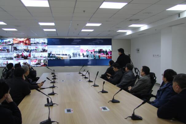 在安建大廈26樓,剛剛建成的可視化調(diào)度中心正在工作人員的操作下精確運(yùn)轉(zhuǎn),屋內(nèi)濟(jì)濟(jì)一堂,一片新春氣象。黨委書記、董事長趙時(shí)運(yùn)攜控股、股份兩級領(lǐng)導(dǎo)班子成員及機(jī)關(guān)有關(guān)部門負(fù)責(zé)同志,通過可視化系統(tǒng),與堅(jiān)守項(xiàng)目的同志們通話。來自安建投資、安徽水利、安徽路橋、安徽路港、安徽交航的7個(gè)項(xiàng)目與集團(tuán)本部進(jìn)行了視頻交流。