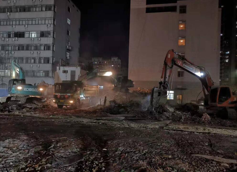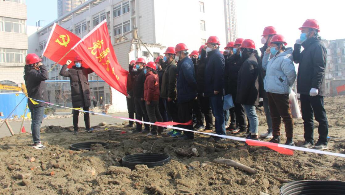 2月1日,施工機(jī)械就位,現(xiàn)場(chǎng)建筑物拆除,進(jìn)行場(chǎng)地平整,施工主干道鋪設(shè)完成。成立黨員突擊隊(duì),帶頭攻堅(jiān)克難。即時(shí)召開(kāi)誓師大會(huì),黨總支書記王錕領(lǐng)誓:全力以赴,保證安全、保證質(zhì)量、保證工期,堅(jiān)決完成建設(shè)任務(wù)。