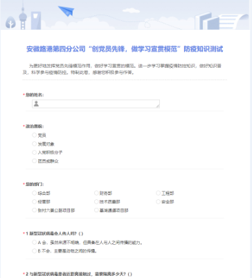 積極引導(dǎo)職工群眾,科學(xué)參與疫情防控。分公司開展“創(chuàng)黨員先鋒,做學(xué)習(xí)宣貫?zāi)7丁本€上防疫知識(shí)答題活動(dòng)。