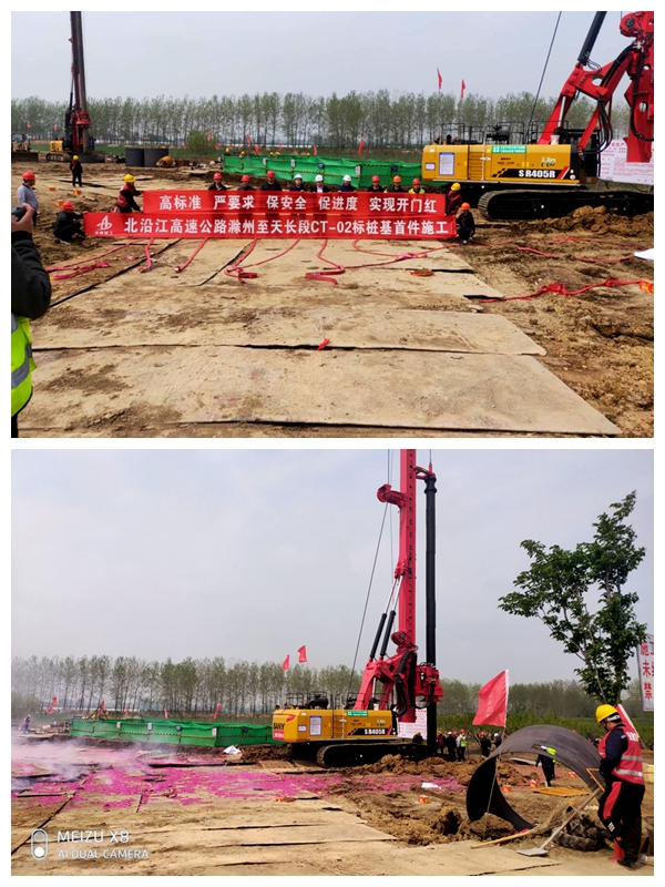 4月10號(hào),在經(jīng)過項(xiàng)目部的各項(xiàng)努力,滁天高速CT-02標(biāo)首件樁基工程正式啟動(dòng)。標(biāo)志著項(xiàng)目部在2020年施工生產(chǎn)中邁出了堅(jiān)