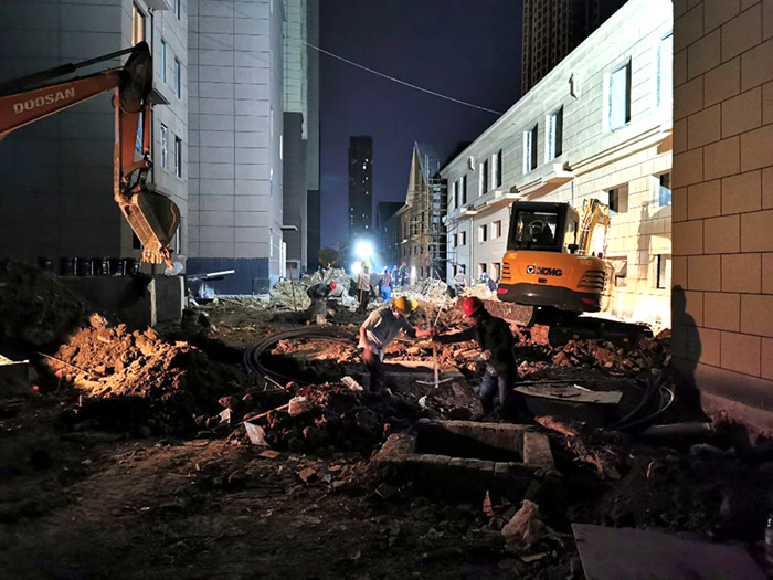 為保障六月底順利交房,工程管理部及楓林源筑項目組織力量搶節(jié)點,24小時三班倒,7#樓北側(cè)及12#樓北側(cè)道路澆筑前鋪設所有管網(wǎng),爭取四月底南區(qū)作業(yè)面基本完工。同步積極與各驗收主管部門溝通聯(lián)系,邀請預驗。