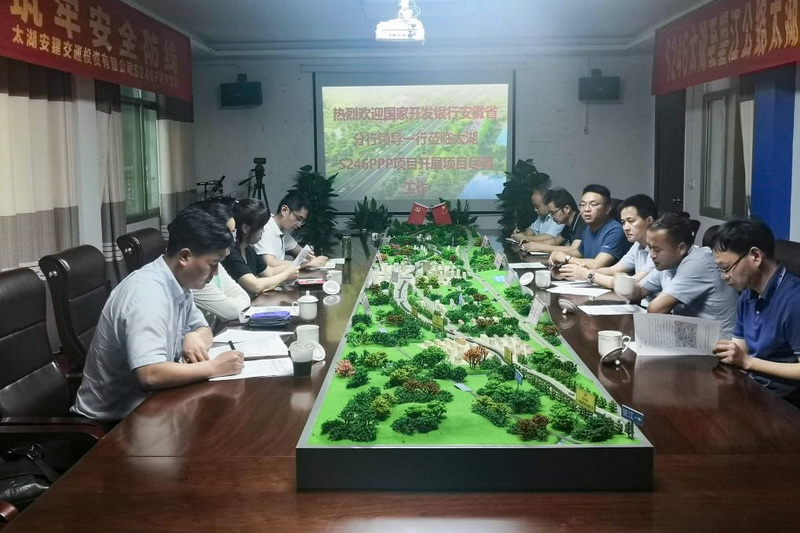 6月10日下午,國(guó)家開(kāi)發(fā)銀行安徽省分行客戶六處處長(zhǎng)申曉瑜一行赴太湖S246PPP項(xiàng)目現(xiàn)場(chǎng)就該項(xiàng)目融資工作進(jìn)行洽談磋商,投資公司副總經(jīng)理黃國(guó)平、財(cái)務(wù)總監(jiān)王繼成及項(xiàng)目公司相關(guān)人員參與洽談。