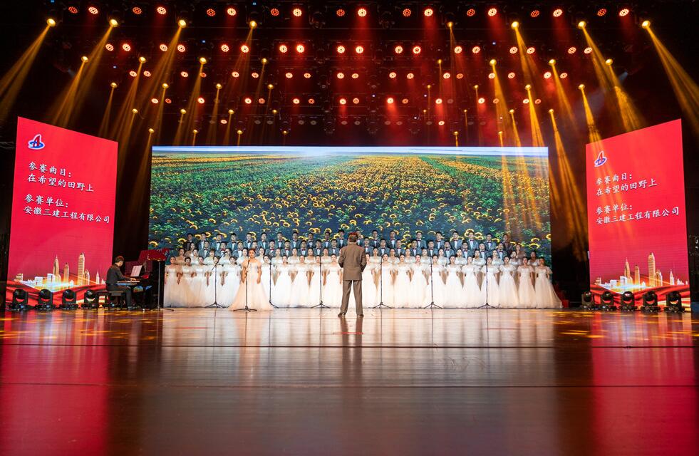 比賽在全場齊唱國歌中拉開帷幕,18個參賽隊伍按照抽簽順序依次登臺演唱?!段业淖鎳贰稅畚抑腥A》《在希望的田野上》《在燦爛的陽光下》等等這些膾炙人口的歌曲,經(jīng)過參賽單位的精心編排和演員們的精彩演繹,讓現(xiàn)場觀眾感覺耳目一新,部分單位在合唱中融入了詩歌朗誦和舞蹈,豐富了合唱的舞臺表現(xiàn)力,贏得觀眾的陣陣掌聲。經(jīng)過近3個小時的激烈比拼,安徽水利等單位分獲一二三等獎;集團機關(guān)獲得特別獎。比賽最后,全場觀眾揮舞手中紅旗,齊聲同唱《歌唱祖國》,將現(xiàn)場氛圍推向高潮。