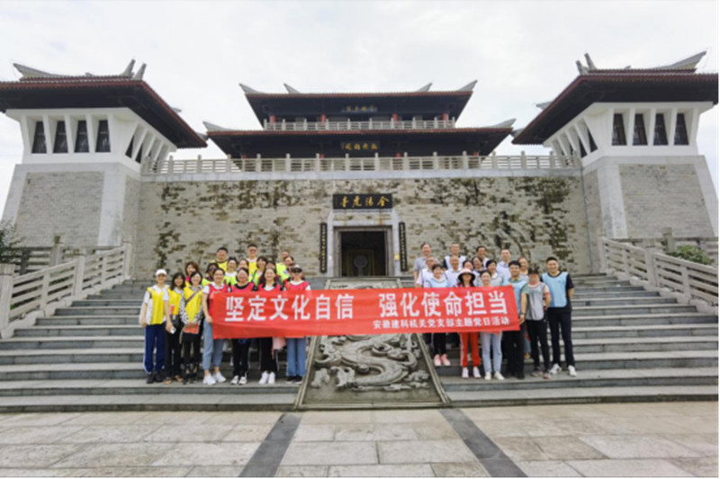 為大力弘揚(yáng)中華傳統(tǒng)文化,增強(qiáng)文化自信,進(jìn)一步提高支部黨員的綜合素質(zhì)和團(tuán)隊(duì)?wèi)?zhàn)斗力,7月22日,安徽建科機(jī)關(guān)黨支部組織黨員、發(fā)展對(duì)象、入黨積極分子共計(jì)37人赴合肥市愛(ài)國(guó)主義教育基地三國(guó)遺址公園開(kāi)展“堅(jiān)定文化自信、強(qiáng)化使命擔(dān)當(dāng)”主題黨日暨團(tuán)隊(duì)建設(shè)活動(dòng)。安徽建科領(lǐng)導(dǎo)項(xiàng)炳泉、安東兵、李躍進(jìn)、程鋼及民主黨派代表侯駿應(yīng)邀參加活動(dòng)。