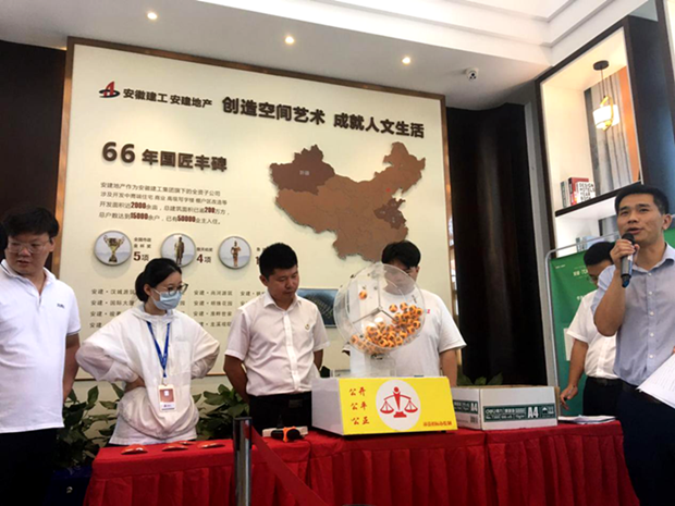 由于此次僅開19間商鋪,為最大程度保證開盤的公開、公平、公正,沛縣公司領(lǐng)導(dǎo)班子結(jié)合《關(guān)于集中開展“靠企吃企 境外腐敗 違規(guī)經(jīng)商辦企業(yè)”三個(gè)專項(xiàng)整治的工作方案》與各部門負(fù)責(zé)人經(jīng)過多次商討,決定采用搖號(hào)的形式進(jìn)行商鋪開盤,并邀請(qǐng)沛縣司法局公證處全程監(jiān)督記錄搖號(hào)過程,堅(jiān)決杜絕任何銷售過程可能存在的不良違規(guī)現(xiàn)象,這在沛縣是絕無僅有的。