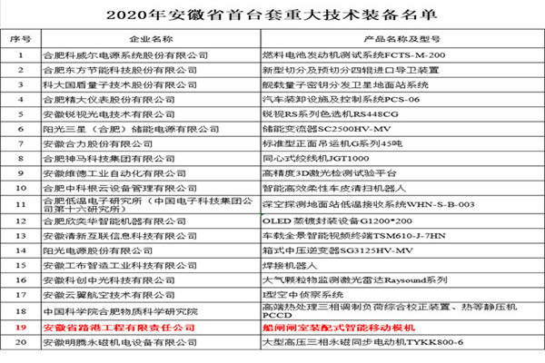 9月23日,省經(jīng)信廳正式公布2020年安徽省首臺(tái)套重大技術(shù)裝備認(rèn)定名單,安徽省路港工程有限責(zé)任公司申報(bào)的“船閘閘室裝配式智能移動(dòng)模機(jī)”(以下簡(jiǎn)稱“船閘移動(dòng)模機(jī)”)產(chǎn)品成功入選。