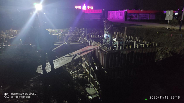 蚌埠市臨港智能制造產(chǎn)業(yè)園項(xiàng)目總建筑面積4.46萬平方米,工程總造價(jià)8500萬元,是蚌埠市“退市進(jìn)園”搬遷重點(diǎn)建設(shè)項(xiàng)目。初冬以至,天氣漸寒,項(xiàng)目上卻是一片大干的火熱景象,放線測(cè)量、鋼筋焊接、承臺(tái)澆筑……所有施工機(jī)械滿負(fù)荷運(yùn)轉(zhuǎn),所有項(xiàng)目人員均在生產(chǎn)一線爭(zhēng)分奪秒。按照原施工計(jì)劃,臨港項(xiàng)目189個(gè)承臺(tái)的鋼筋捆扎焊接及三千余立方的混凝土澆筑應(yīng)在11月底完成,但晴雨表顯示11月下旬均為陰雨天,所以必須提前完成此項(xiàng)施工任務(wù)。時(shí)間緊、任務(wù)重,項(xiàng)目部立刻行動(dòng)起來,及時(shí)調(diào)整施工及進(jìn)度方案,加大人力、物力的投入,全體員工主動(dòng)放棄休息,不分晝夜、“5+2”“白+黑”,輪流堅(jiān)守在施工現(xiàn)場(chǎng)。臨港的夜幕已經(jīng)緩緩降臨,但項(xiàng)目上仍然人頭攢動(dòng)、身影忙碌,施工人員在黑夜的畫紙上勾勒出了一副“大干快上,只爭(zhēng)朝夕”的場(chǎng)景。