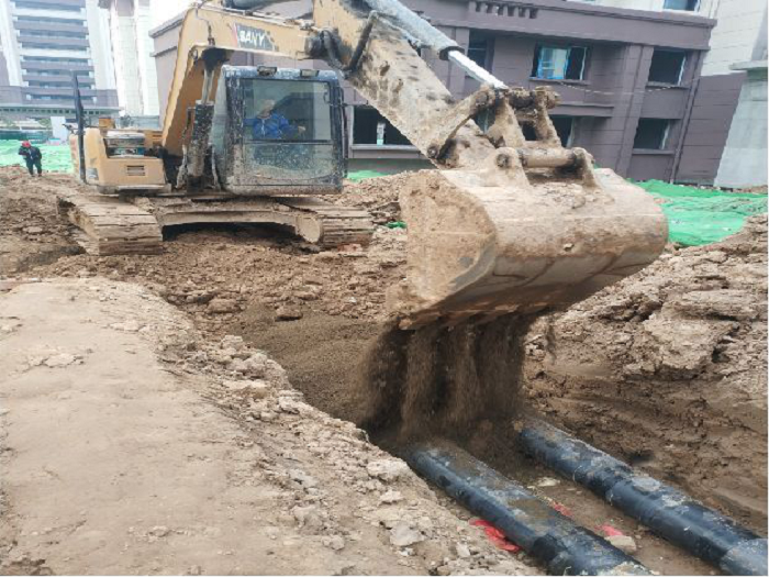 安建漢城源筑書香苑供暖工程項(xiàng)目全體參建人員不畏艱難、逆勢(shì)而上,始終堅(jiān)持“白加黑”“5+2”的連續(xù)作戰(zhàn)模式,管理人員靠前指揮、作業(yè)人員并聯(lián)推進(jìn),只見挖掘機(jī)迅速掘進(jìn)、土方車來回穿梭、焊接火花四處飛濺……到處一片大干快干的繁忙景象。截至目前,第一階段1、2號(hào)樓室外熱力管網(wǎng)敷設(shè)任務(wù)已基本完成,比合同規(guī)定節(jié)點(diǎn)提前20天,獲得了業(yè)主單位的肯定與贊許。
