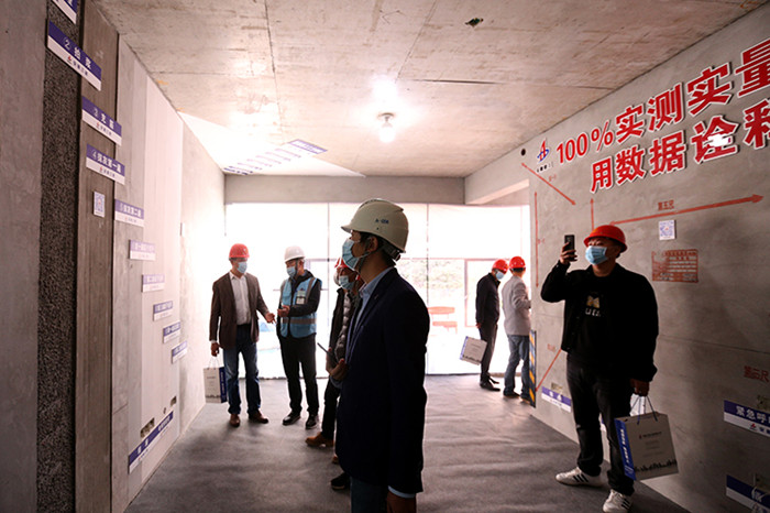 觀摩團先后參觀了現(xiàn)場安全體驗區(qū)、現(xiàn)場質(zhì)量樣板區(qū)、樓體實體質(zhì)量等,對項目質(zhì)量安全管理、實測實量檢查、信息化應用、樣板先行制度、BIM技術應用等給予了高度評價。