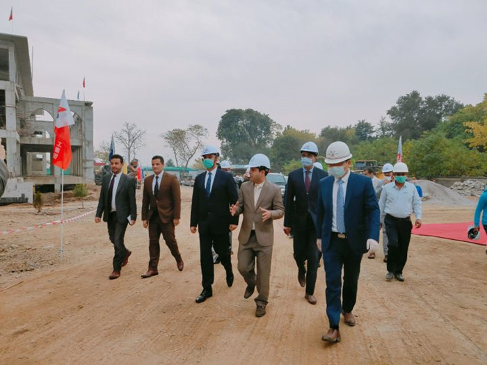 阿利克爾大使向出席儀式的全體人員表示祝賀并致辭,他指出,阿富汗駐巴大使館是阿富汗駐外使領(lǐng)館中面積最大的建筑,安徽建工面對疫情影響迎難而上,順利實(shí)現(xiàn)了結(jié)構(gòu)封頂這一重要里程碑,再次證明了安徽建工是一支有實(shí)力、重承諾、守信譽(yù)的隊(duì)伍。
