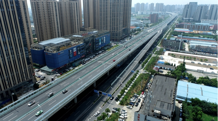合肥市阜陽北路高架工程,是合肥市迄今為止最長的高架,是聯(lián)系合肥主城區(qū)與北部新城的快速路,被譽(yù)為“合肥北向第一路”“廬州北翼第一橋”。項(xiàng)目南起東方大道,北至北外環(huán)高速,道路全長7.02公里,建設(shè)投資22.48億元。