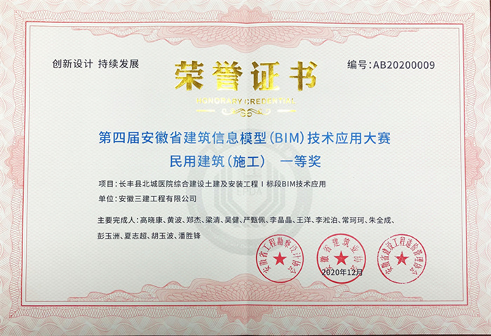 近期,安徽三建公司喜獲三項BIM大獎!《省重點實驗室-抗震檢測實驗室BIM綜合深化應用》獲第五屆中國建設工程BIM大賽綜合三類成果,長豐縣北城醫(yī)院項目、合肥市青少年綜合實踐基地新建工程分獲2020年度安徽省第四屆建筑信息模型(BIM)技術應用大賽一等獎和三等獎。