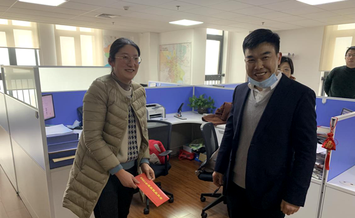 2月5日下午,安建地產(chǎn)黨委副書記、總經(jīng)理楊海飛慰問天長公司職工徐園園。