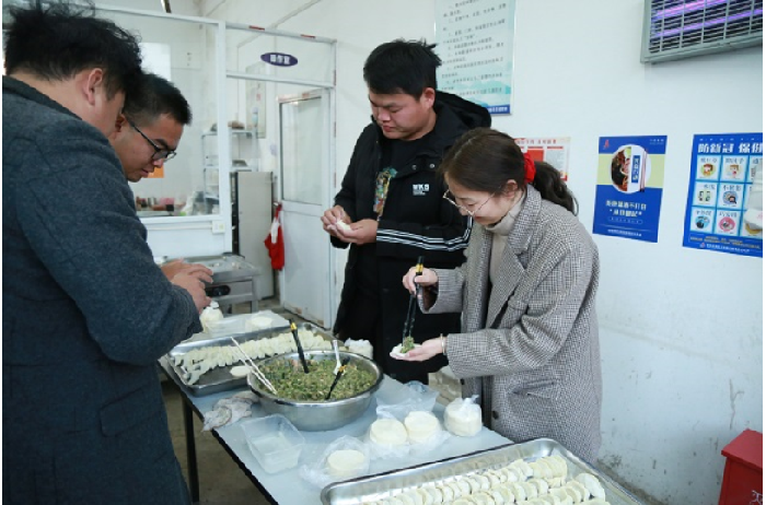 蕪黃03標(biāo)項(xiàng)目春節(jié)前,職工食堂組織了包餃子活動,大家圍在餐桌旁有說有笑地開始準(zhǔn)備,有人和面、有人搟皮兒、有人包餃子,分工明確又配合默契。大家在歡樂、溫馨的氣氛中相互幫助,密切配合,個(gè)個(gè)大顯伸手,充分展示著自己的手藝,互相傳授著包餃子的經(jīng)驗(yàn),在歡聲笑語襯托出濃濃的春節(jié)氣氛。