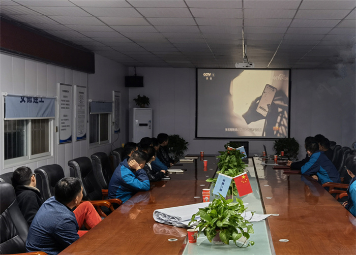 防水公司、華力勞務(wù)公司職工晚間自發(fā)收看專題節(jié)目。
