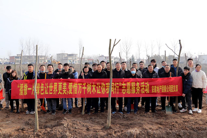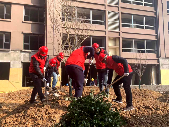 沛縣支部聯(lián)合安徽一建組織開展植樹活動(dòng)。3月12日,團(tuán)員青年前往安建地產(chǎn)·漢城源筑書香苑園林景觀處,分工協(xié)作——搬運(yùn)樹苗、挖坑放樹苗、填土踏實(shí),最后澆水灌溉,小心仔細(xì)地為春天增上一抹生機(jī)。在大家共同辛勤勞動(dòng)下,書香苑園林景觀處裸露的黃土上多了一顆顆小樹苗,為明媚的春光又增添了一份綠意,更顯生機(jī)勃勃。此次活動(dòng)中全體參與人員親手栽種樹苗,增強(qiáng)了愛樹護(hù)樹的意識(shí),強(qiáng)化保護(hù)環(huán)境、愛護(hù)家園的環(huán)保觀念。