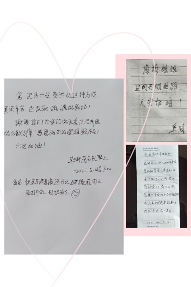 臨危受命,快速響應(yīng)。六安酒店以高度的政治意識、責(zé)任意識和抗疫安全意識,精心組織、周密安排,制定了詳細(xì)的接待方案。準(zhǔn)備房卡、集中清理房間、設(shè)計盒飯菜單、聯(lián)系防疫物資等分工明確、責(zé)任到人,為“逆行者”們提供了細(xì)致、周到、貼心的服務(wù),贏得了醫(yī)療隊的一致贊揚。臨別之時,醫(yī)療隊員與酒店管理團(tuán)隊高喊“六安加油、中國加油”,依依惜別。