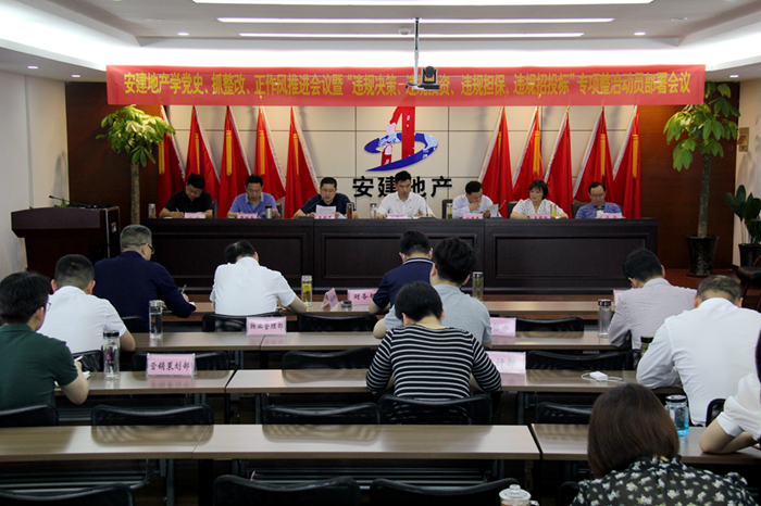 5月27日,安建地產(chǎn)在安建國(guó)際大廈21樓會(huì)議室召開(kāi)學(xué)黨史、抓整改、正作風(fēng)推進(jìn)會(huì)議暨“違規(guī)決策、違規(guī)投資、違規(guī)擔(dān)保、違規(guī)招 投標(biāo)”專項(xiàng)整治動(dòng)員部署會(huì)議。安建地產(chǎn)領(lǐng)導(dǎo)班子成員,機(jī)關(guān)部門正副職,機(jī)關(guān)全體黨員在主會(huì)場(chǎng)參會(huì),所屬各單位領(lǐng)導(dǎo)班子成員及各部門負(fù)責(zé)人在視頻分會(huì)場(chǎng)參會(huì)。