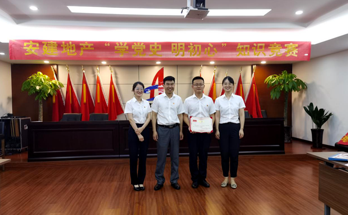 為慶祝建黨100周年,提升廣大職工學(xué)黨史的熱情和成效,弘揚黨的優(yōu)良傳統(tǒng),砥礪初心使命,7月8日下午,安建地產(chǎn)在安建大廈21樓第三會議室開展“學(xué)黨史 明初心”知識競賽,同興公司、阜陽公司、固鎮(zhèn)公司、淮北公司、瑤海公司、沛縣公司以及機關(guān)7個黨支部21名選手參賽。公司領(lǐng)導(dǎo)出席并為獲獎隊伍頒獎。此次活動的開展,旨在引導(dǎo)廣大黨員干部職工學(xué)史明理、學(xué)史增信、學(xué)史崇德、學(xué)史力行,進一步增強基層黨組織的凝聚力和戰(zhàn)斗力,激勵黨員堅定理想信念,增強歷史責(zé)任感和使命感。