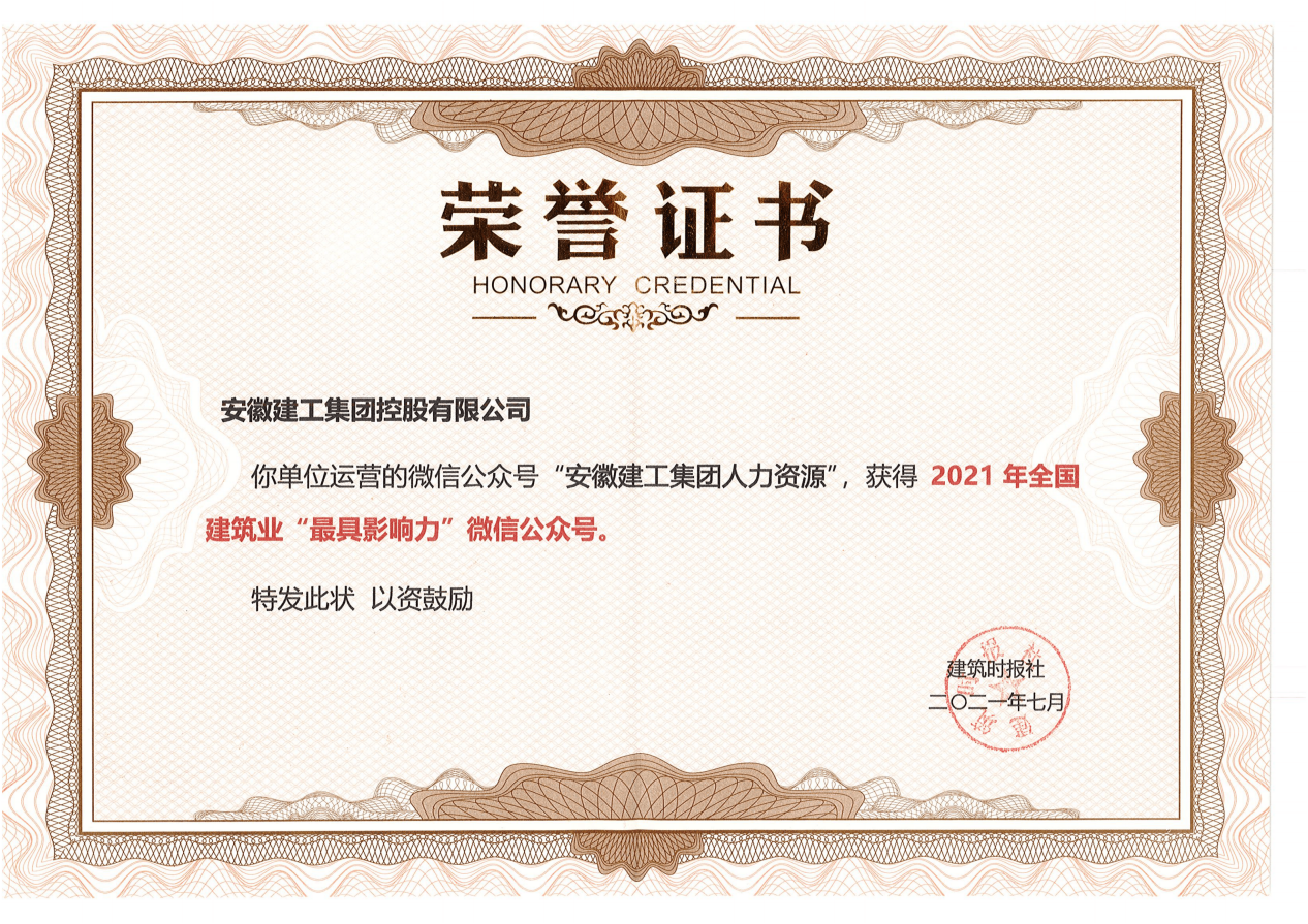 7月15日至17日,由建設(shè)部所屬建筑時(shí)報(bào)社主辦的2021年建筑業(yè)微信公眾號(hào)運(yùn)維經(jīng)驗(yàn)交流研討會(huì)暨2021年全國建筑業(yè)優(yōu)秀微信公眾號(hào)頒獎(jiǎng)典禮在揚(yáng)州召開?!鞍不战üぜ瘓F(tuán)人力資源”微信公眾號(hào)榮登“2021年全國建筑業(yè)最具影響力公眾號(hào)”榜單。