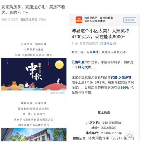 因沛縣防疫要求,安建·漢城源筑項(xiàng)目在中秋節(jié)到來(lái)之際,以線上推廣促銷活動(dòng)為主,舉行了“安家購(gòu)房季——購(gòu)好房 送豪禮”活動(dòng)。邀請(qǐng)抖音網(wǎng)紅前來(lái)現(xiàn)場(chǎng)拍攝視頻并在抖音發(fā)布,宣傳活動(dòng)信息,并通過(guò)便民網(wǎng)、微信公眾號(hào)、朋友圈等推廣活動(dòng)及在售信息。營(yíng)銷策劃部工作人員節(jié)日期間采用輪流排班,堅(jiān)守營(yíng)銷崗位,緊抓雙節(jié)期間置業(yè)節(jié)點(diǎn),緊鑼密鼓加速項(xiàng)目銷售工作。安建漢城源筑9月累計(jì)認(rèn)購(gòu)住宅19套,車位22個(gè),累計(jì)認(rèn)購(gòu)金額超2000萬(wàn)元。