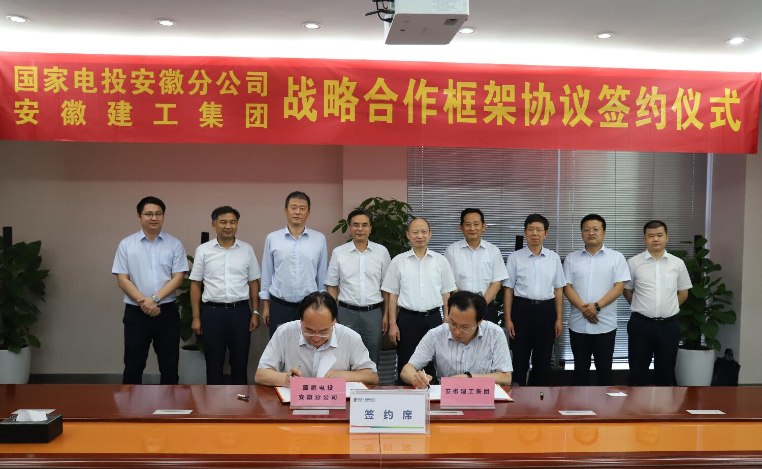 國(guó)家電投安徽分公司黨委委員、總經(jīng)理助理、綜合部總經(jīng)理聶品及有關(guān)部門負(fù)責(zé)人,安徽建工集團(tuán)黨委副書(shū)記牛曙東,黨委委員、股份公司董事長(zhǎng)王厚良及有關(guān)部門負(fù)責(zé)人出席簽約儀式。