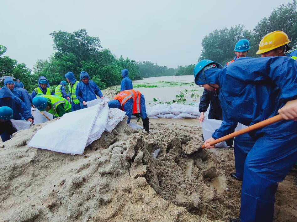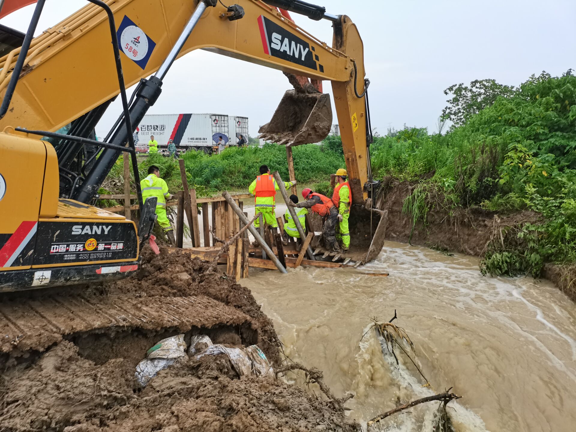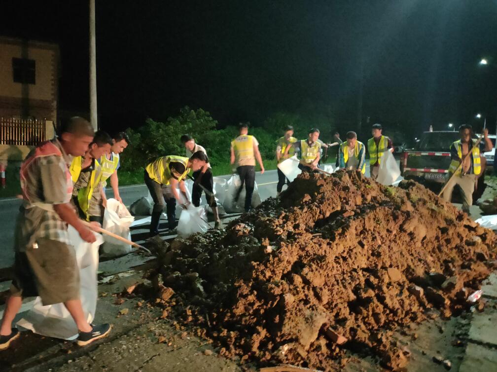 7月19日,安徽路港市政分公司興業(yè)大道項目部收到當?shù)卣笾?,迅速組建聯(lián)合防汛青年突擊隊,并帶領(lǐng)物資設(shè)備火速趕到現(xiàn)場配合當?shù)卣舛滦∈裆街Q堤口。