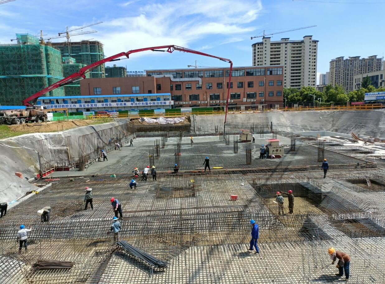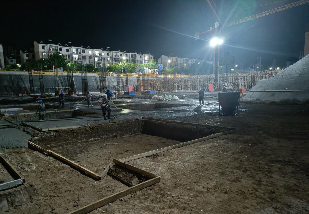 9月23日,人防區(qū)C區(qū)伐板基礎(chǔ)中午12:00開(kāi)始澆筑。為確?;炷翝仓|(zhì)量,項(xiàng)目部選定2條快速運(yùn)輸路線和1條備用路線,調(diào)用20臺(tái)混凝土罐車(chē)不間斷運(yùn)輸。項(xiàng)目職工自發(fā)全部堅(jiān)守崗位,晝夜鏖戰(zhàn),全天候?qū)ΜF(xiàn)場(chǎng)混凝土和易性、澆筑、振搗等進(jìn)行監(jiān)控。項(xiàng)目班子全員靠前指揮,過(guò)程中妥善協(xié)調(diào)解決工程施工擾民問(wèn)題。經(jīng)過(guò)長(zhǎng)達(dá)13個(gè)小時(shí)的奮戰(zhàn),于第二日凌晨1:00最終完成筏板基礎(chǔ)現(xiàn)場(chǎng)混凝土的連續(xù)澆筑,比原計(jì)劃提前了近3小時(shí)完成。