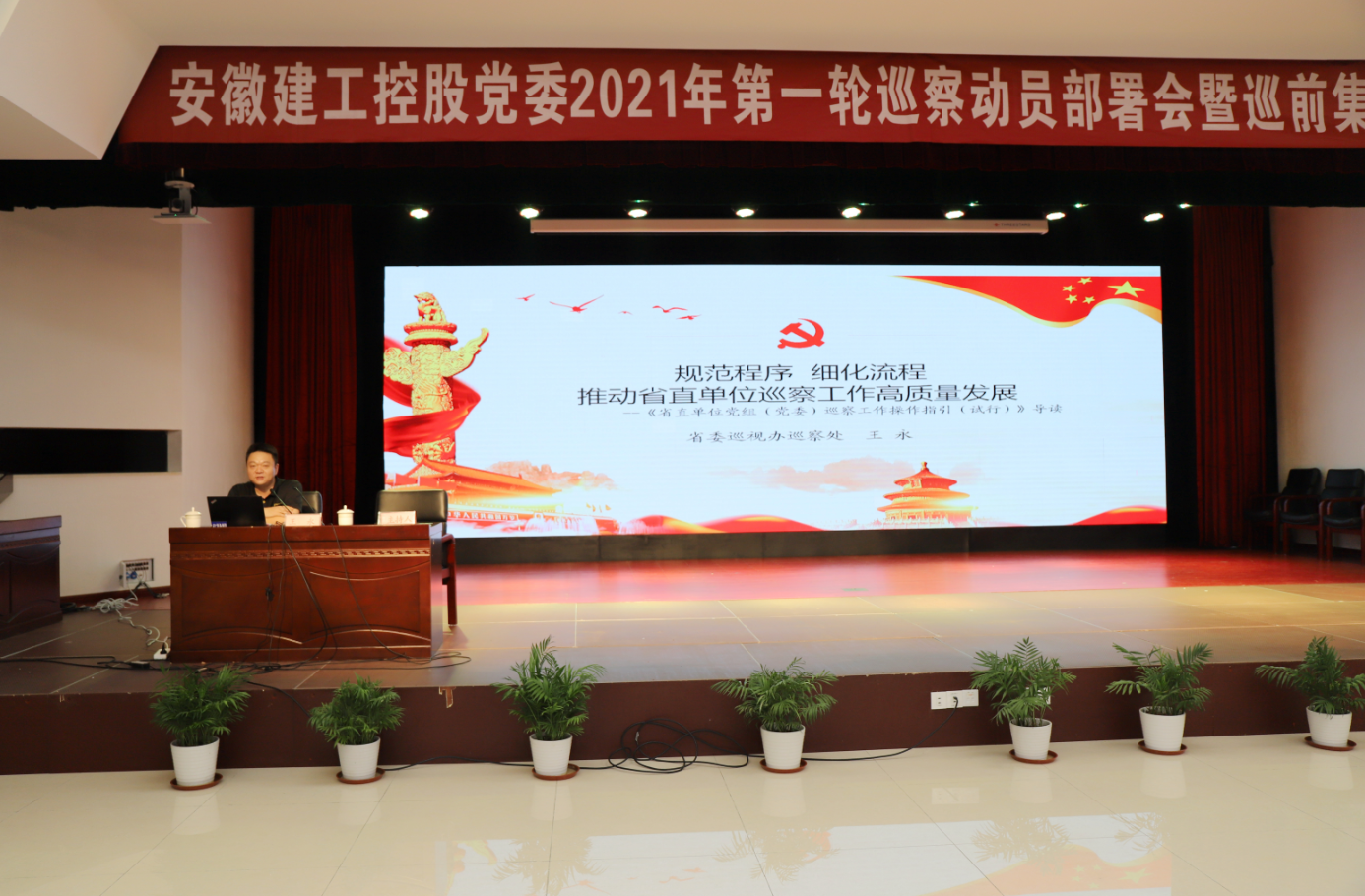 8月20日,建工控股黨委召開2021年第一輪巡察動員部署會暨巡前集中學習培訓班,深入學習貫徹中央及省委關(guān)于開展巡察工作的指導意見,認真落實2021年省直單位巡察工作推進會議精神,動員部署集團2021年第一輪巡察工作并開展巡察工作集中培訓,正式啟動集團新一輪巡察工作。建工控股黨委書記、董事長、黨委巡察工作領(lǐng)導小組組長趙時運出席會議并作動員講話。建工控股黨委委員、紀委書記、黨委巡察工作領(lǐng)導小組副組長王汪苗主持會議,建工控股、建工股份領(lǐng)導班子成員、集團黨委巡察工作領(lǐng)導小組成員出席會議。