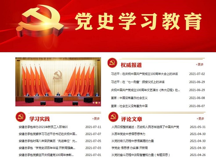 增設(shè)學(xué)習(xí)專欄。在公司門戶網(wǎng)站設(shè)置“黨史學(xué)習(xí)教育”板塊,動態(tài)發(fā)布人民網(wǎng)、新華網(wǎng)等主流媒體權(quán)威報道、評論文章和公司黨史學(xué)習(xí)教育活動有關(guān)新聞報道;公司微信公眾號堅持每日發(fā)布“黨史百年天天讀”;統(tǒng)籌集團(tuán)年度工作會和職代會以及公司職代會精神宣貫,統(tǒng)一制作、在辦公區(qū)域和所屬項目駐地擺放宣傳展板,懸掛宣傳橫幅;開展“節(jié)日里的黨史教育”,發(fā)布“致敬堅守崗位的勞動者”等專題報道