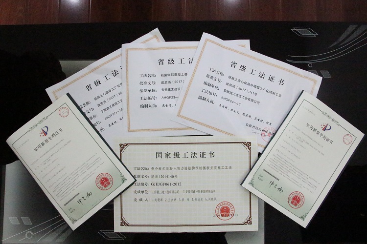 作為集團(tuán)第一家裝配式建筑公司,建筑工業(yè)公司從“白手起家”,“摸著石頭過河”,選派優(yōu)秀的大學(xué)生前往沈陽學(xué)習(xí)裝配式建筑預(yù)制構(gòu)件拆分和深化設(shè)計(jì)以及生產(chǎn)技術(shù),并成立科技攻關(guān)團(tuán)隊(duì),不斷摸索、反復(fù)嘗試。經(jīng)過幾年發(fā)展,建筑工業(yè)公司已培養(yǎng)專業(yè)技術(shù)骨干40余人,包括省級技術(shù)專家1人,市級技術(shù)專家3人,專業(yè)設(shè)計(jì)研發(fā)15人,成為發(fā)展的核心競爭力;獲批全國首批裝配式建筑示范基地、首批省級裝配式建筑產(chǎn)業(yè)基地、國家級高新技術(shù)企業(yè)、安徽省瞪羚企業(yè),是國內(nèi)首批安徽省首家獲得綠色建材三星認(rèn)證的裝配式建筑生產(chǎn)企業(yè);榮獲國家專利18項(xiàng),發(fā)明專利2項(xiàng)、國家級QC成果3項(xiàng)、國家版權(quán)局計(jì)算機(jī)軟件著作權(quán)2項(xiàng),省優(yōu)QC成果7項(xiàng),省級工法9項(xiàng)、企業(yè)級工法22項(xiàng),編行業(yè)標(biāo)準(zhǔn)2項(xiàng)、地方標(biāo)準(zhǔn)3項(xiàng),各項(xiàng)業(yè)績碩果累累。