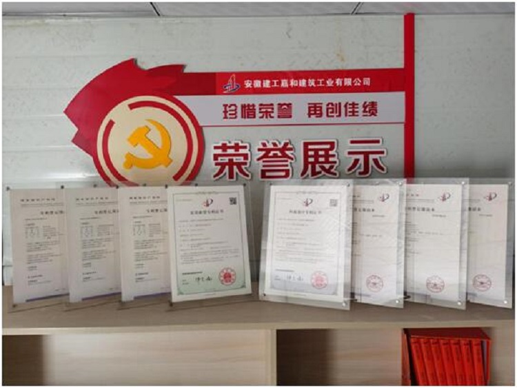 嘉和建筑產(chǎn)業(yè)園高度重視技術(shù)研發(fā)實(shí)力提升,已承接了多個(gè)相關(guān)課題的研發(fā),并取得階段性成果。其中《裝配式產(chǎn)業(yè)助力蚌埠市建筑業(yè)綠色轉(zhuǎn)型升級(jí)研究》課題獲得由蚌埠市“社會(huì)科學(xué)規(guī)劃政府資助項(xiàng)目”立項(xiàng),成為該市智庫(kù)建設(shè)和社會(huì)科學(xué)規(guī)劃立項(xiàng)唯一由生產(chǎn)企業(yè)申報(bào)成功的建筑行業(yè)領(lǐng)域課題。先后取得一種用于PC構(gòu)件養(yǎng)護(hù)窯螺栓預(yù)埋的裝配式定位裝置、裝配式定位器(PC構(gòu)件養(yǎng)護(hù)窯螺栓預(yù)埋用)、通風(fēng)外墻、一種建筑內(nèi)隔墻、鋼結(jié)構(gòu)復(fù)合樓板、一種輕鋼結(jié)構(gòu)房屋墻壁、樓板結(jié)構(gòu)、一種輕鋼結(jié)構(gòu)建筑屋面等多項(xiàng)發(fā)明專(zhuān)利權(quán),7項(xiàng)專(zhuān)利正在申報(bào)中。