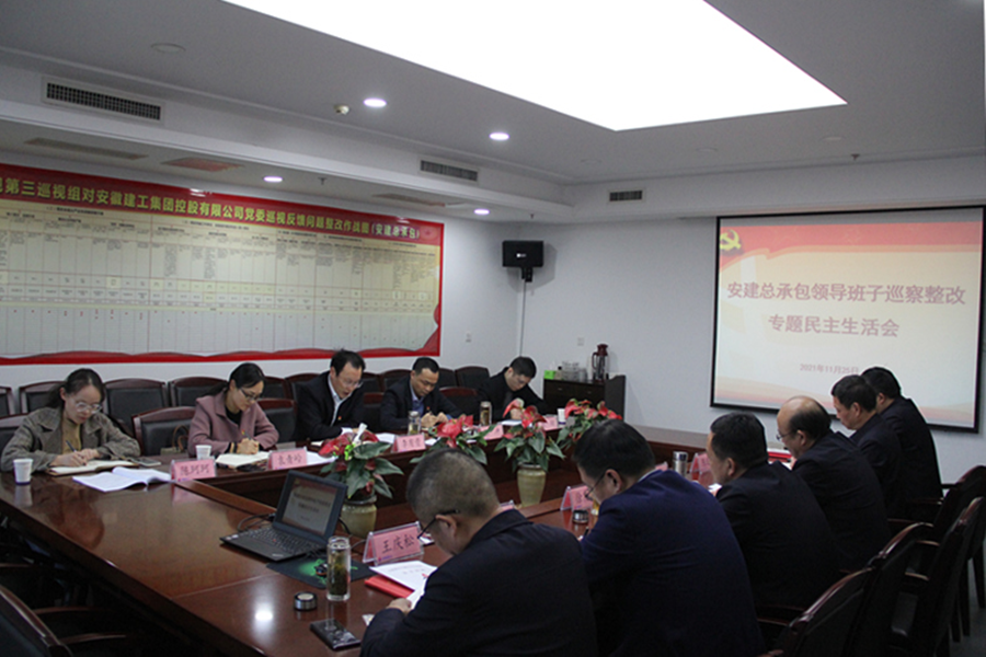 根據(jù)集團(tuán)黨委巡察整改工作部署,11月25日下午,安建總承包黨委召開領(lǐng)導(dǎo)班子巡察整改專題民主生活會(huì)。建工股份黨委副書記、董事、總經(jīng)理李有貴到會(huì)指導(dǎo)并講話,集團(tuán)黨委巡察辦副主任袁青嶺、集團(tuán)紀(jì)委紀(jì)檢監(jiān)察室負(fù)責(zé)人劉翔、巡察辦陳珂珂和公司領(lǐng)導(dǎo)班子全體七名成員參會(huì),公司黨委書記、總經(jīng)理張沖主持會(huì)議。