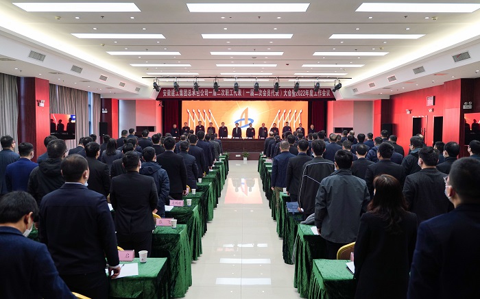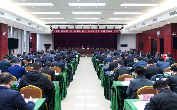 人勤春來早,奮進正當時!壬寅虎年春節(jié)假期剛過,2月12日至13日周末,安建總承包一屆二次職工代表(一屆二次會員代表)大會暨2022年度工作會議在安建大廈勝利召開,學習傳達集團二屆二次職代會暨2022年工作會議精神,回顧總結(jié)2021年工作,謀劃部署2022年工作。建工股份黨委副書記、總經(jīng)理、董事李有貴出席并講話,集團黨委工作部部長王詩旵率考核組到會開展公司領導班子及成員2021年度綜合考核以及“一報告兩評議”民主測評工作。公司領導張沖、王成民、高立久、陳道兵、徐友修、谷建偉、李登祥、王慶松、副督察員孫有勇、總助阮明、余新友參會,九個政企合資公司政府股東方派駐的十多名經(jīng)理層人員作為特邀代表參會。大會在奏唱《安徽建工之歌》中開幕。