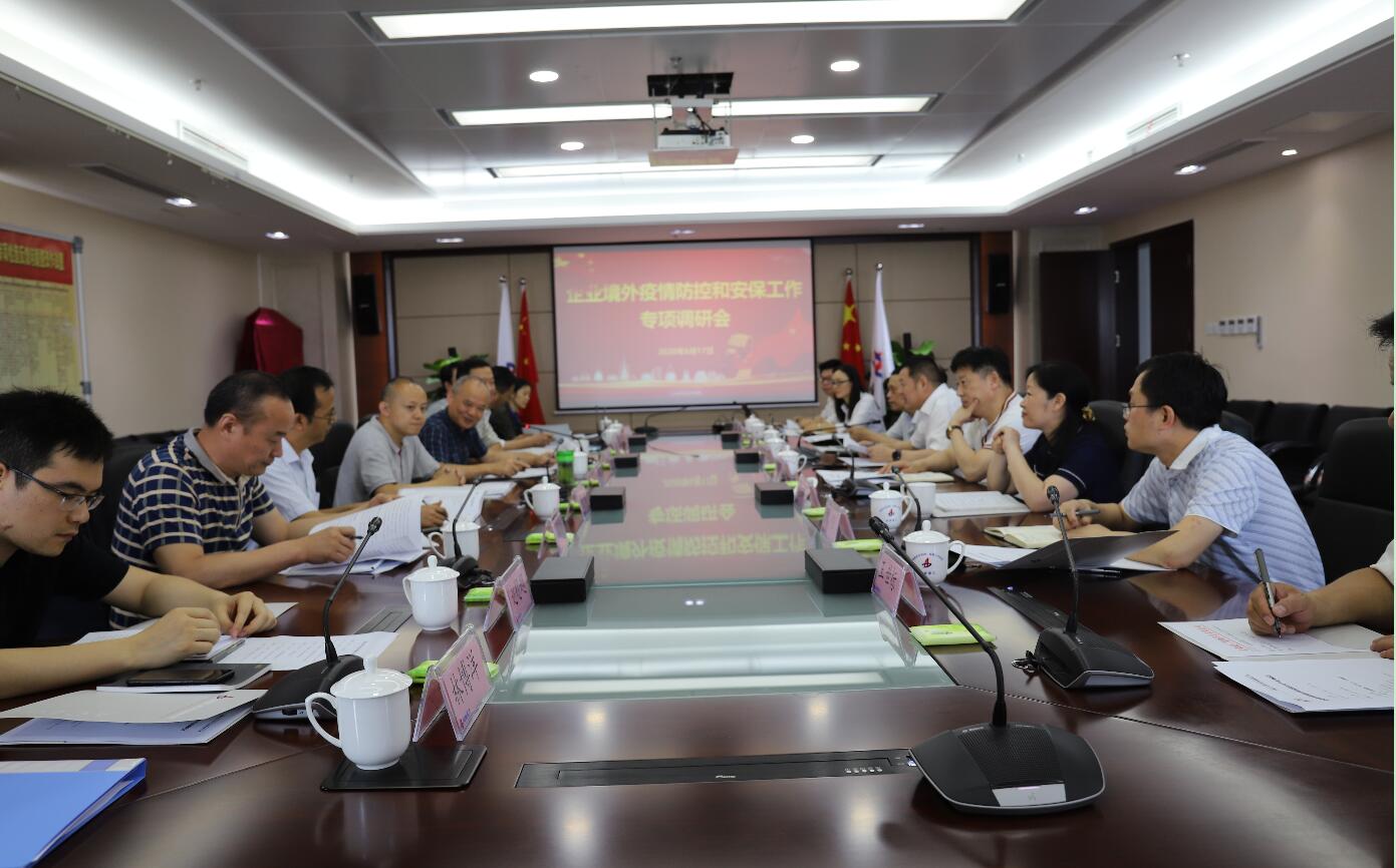 省外辦、省國資委、省衛(wèi)健委、省商務(wù)廳處室有關(guān)人員參加調(diào)研。股份公司黨委副書記、副總經(jīng)理孫學(xué)軍對集團(tuán)境外疫情防控有關(guān)情況進(jìn)行匯報(bào)。股份公司副總經(jīng)理、海外事業(yè)部黨總支書記、總經(jīng)理邢應(yīng)梅及境外疫情境外防控領(lǐng)導(dǎo)小組成員部門有關(guān)負(fù)責(zé)同志參加調(diào)研,并回答了調(diào)研人員對境外疫情防控和安保工作的相關(guān)提問。