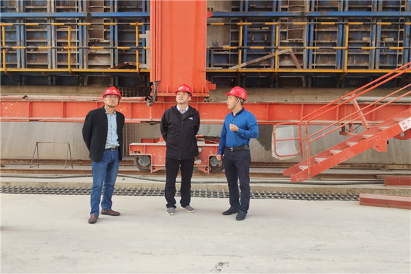 戴良軍一行深入施工現(xiàn)場實地查看項目進度、技術(shù)、質(zhì)量、安全管理情況,詳細了解工程質(zhì)量控制措施、施工工藝創(chuàng)新等情況并仔細詢問了相關(guān)技術(shù)細節(jié)。在聽取項目相關(guān)介紹后,戴良軍對靈璧船閘項目當前各項工作給予高度肯定,并結(jié)合項目實際,在施工重大裝備升級改造、高空作業(yè)防護、混凝土表面鑿毛技術(shù)、工藝優(yōu)化創(chuàng)新等方面提出指導建議。